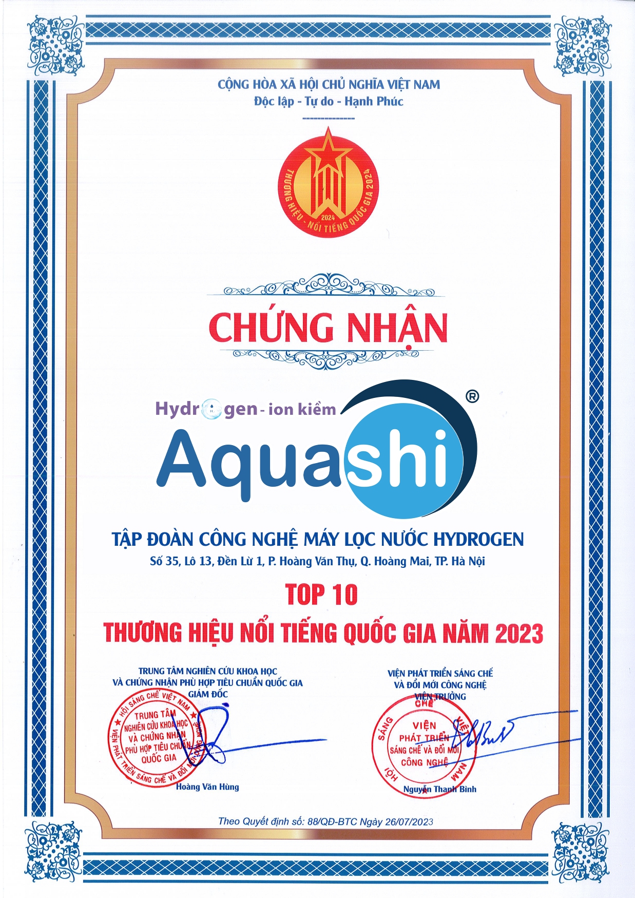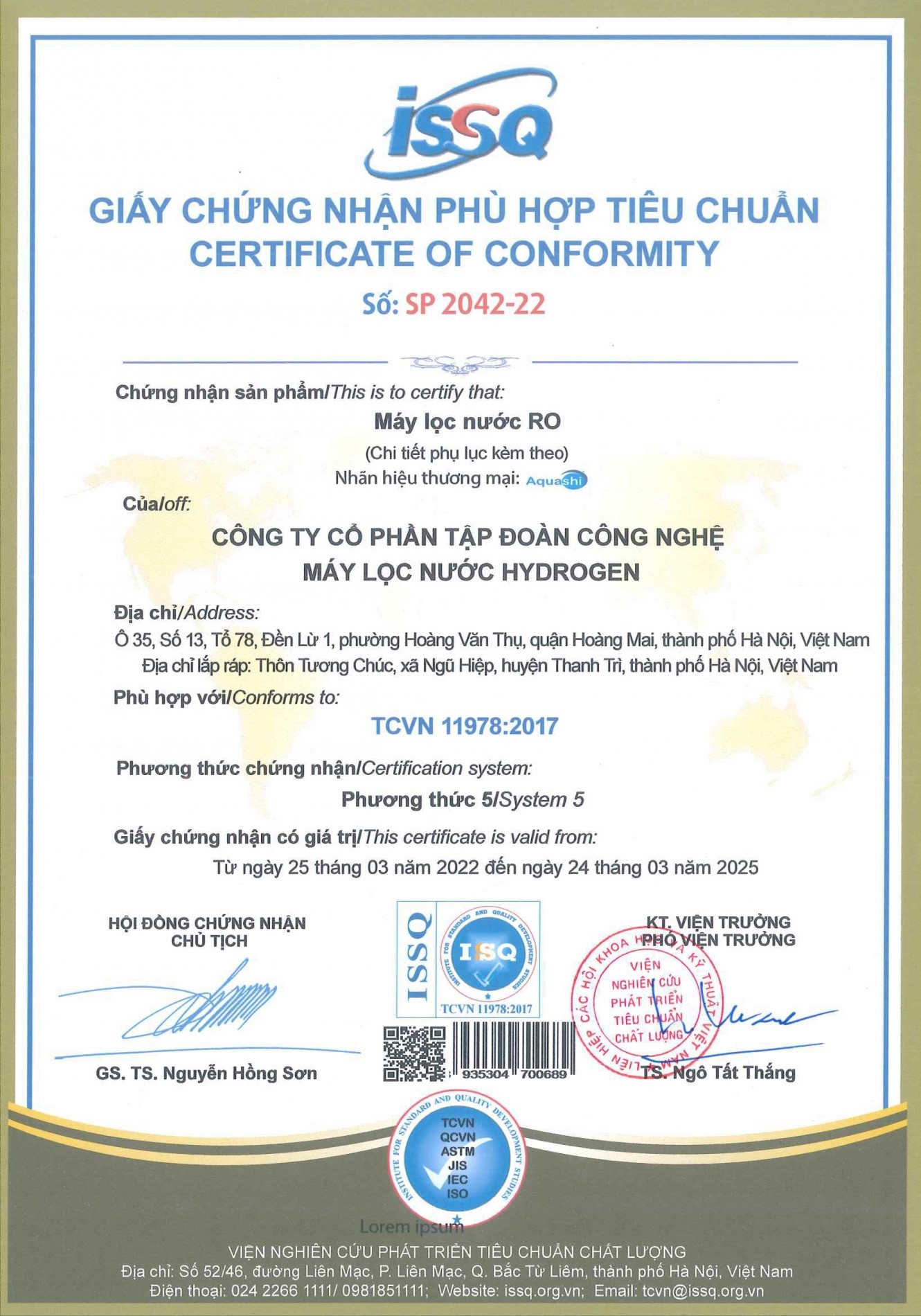 | Tên gọi | Máy lọc nước Hydrogen - AQUASHI |