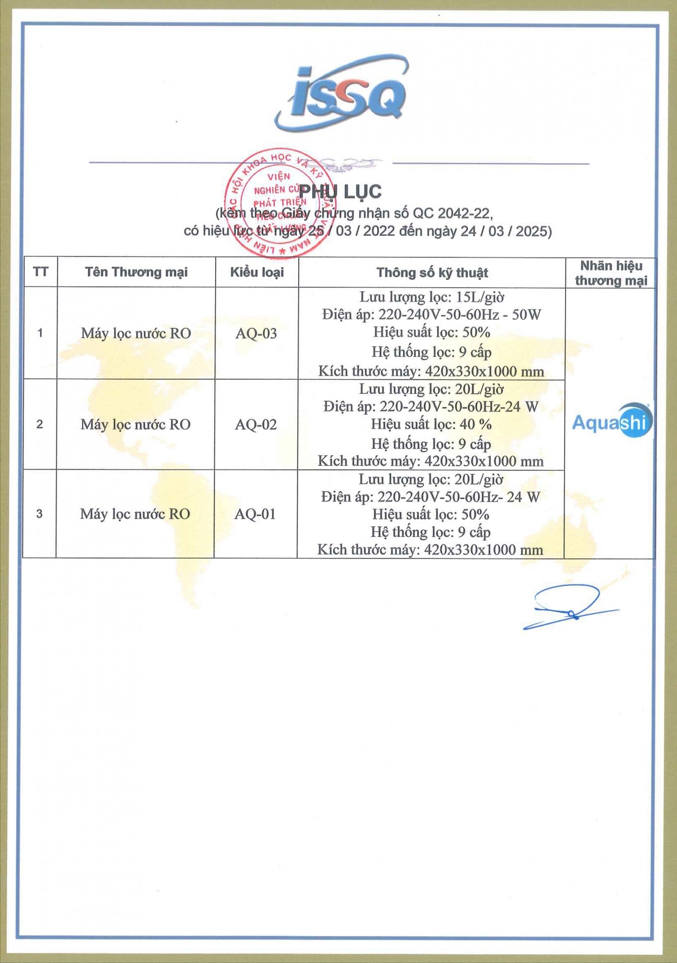 | Số loại nước Aquashi |